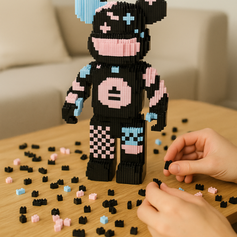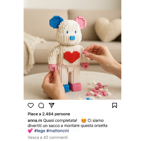 Assemblare i micro-mattoni trasforma la tensione in calma concentrazione: la mente si concentra su un gesto semplice e ripetitivo, il tempo rallenta e il respiro si stabilizza. I brevi passi creano un vero e proprio effetto di flusso e un senso di controllo, mattone dopo mattone. In 20-30 minuti, ci si disconnette dagli schermi, si canalizza l'irrequietezza e si trova un rilassamento tangibile grazie alla progressione visibile. Una volta esposti, gli orsetti diventano un promemoria visivo di serenità nella vita di tutti i giorni.